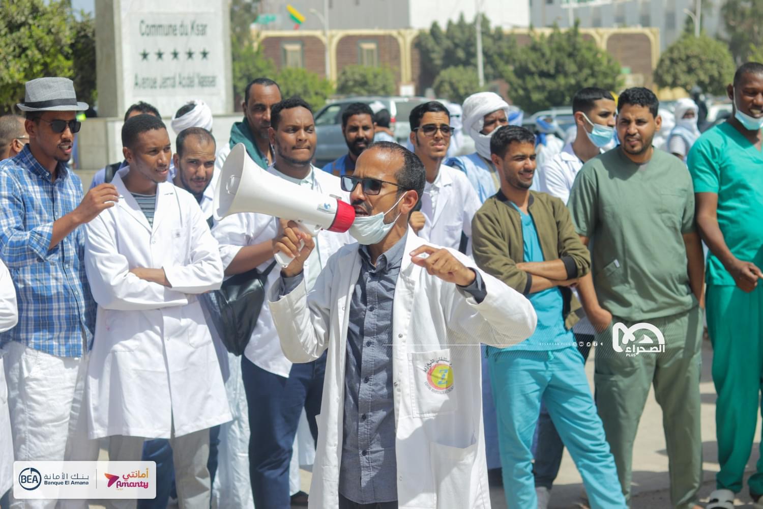 تظاهر عدد من الأطباء المقيمين بمستشفيات نواكشوط، اليوم، في ساحة الحرية قبالة القصر الرئاسي.