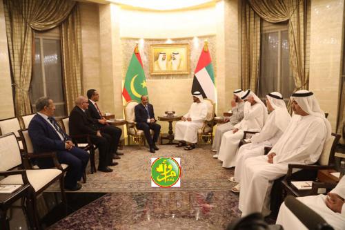 Le Président de la République, Son Excellence Monsieur Mohamed Ould Abdel Aziz, a effectué, dimanche après-midi à Abou Dhabi, des entretiens avec Son Altesse Cheikh Mohamed Bin Zayed al-Nahyan, prince héritier d’Abu Dhabi, commandant adjoint des forces armées et président du conseil exécutif de l’Émirat d’Abu Dhabi.