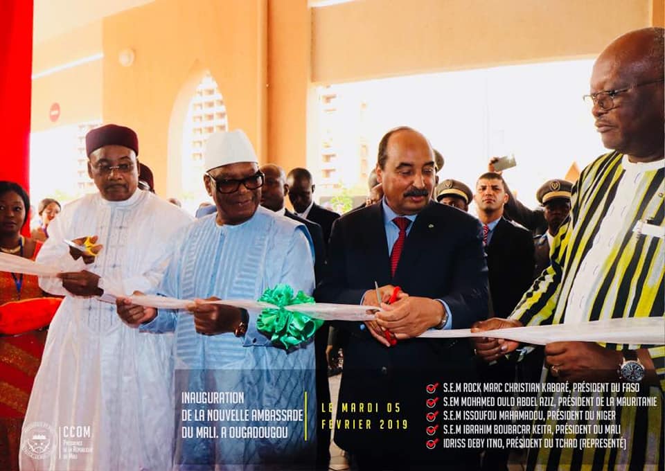 Le président Ibrahim Boubacar Keïta a tenu à ce que la plaque de l’ambassade précise qu’elle a été inaugurée par les cinq présidents du G5 Sahel, y compris le président tchadien qui avait pourtant déjà quitté Ouagadougou. «Que tout le G5 Sahel figure sur cette plaque», a-t-il instruit. Il a salué ses pairs pour ce bel esprit affiché devant le monde entier, avant de se dire convaincu que le Sahel réussira à redevenir cette zone de paix, de civilisations brillantes, d’humanisme…