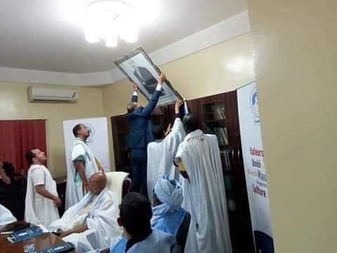Le portrait a été réinstallé par la suite à sa place initiale, d’où son absence à la rencontre tenue le lendemain, cette fois en présence du candidat de la Majorité Mohamed Ould Ghazouani et dudit comité.