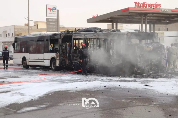 Le bus a été entièrement détruit par les flammes, ont affirmé des universitaires à Essahraa Online, selon lesquels, les feux ont dévoré tout ne laissant que le squelette de bus.