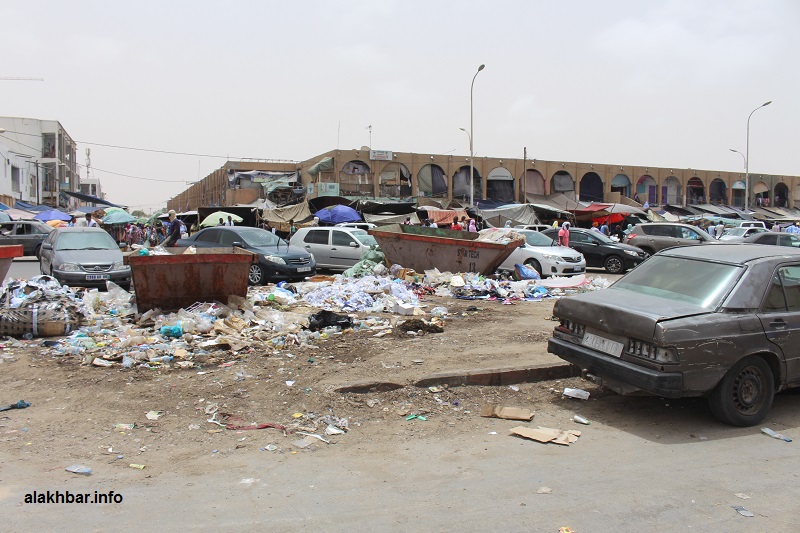 Un entassement spectaculaire des ordures s’est formé à l’intérieur et dans les alentours du marché central de Nouakchott dit marché « Kapital »,  4 jours  seulement après le lancement d’une campagne généralisée de salubrité de la ville annoncée par le gouvernement et dont l’armée a été chargée de l’exécution.