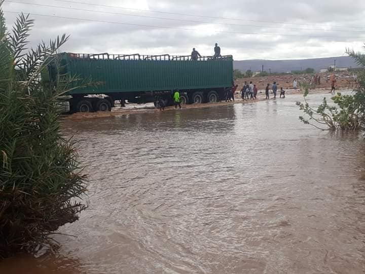 La route a été coupée au niveau de la commune d’El Ghayra relevant de la wilaya de l’Assaba, où les véhicules se sont alignés en attendant de trouver une solution pour traverser la voie.