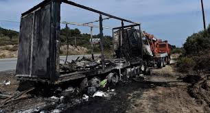 Le chauffeur du camion, qui se dirigeait vers Kavala, une ville de la côte nord-est, s’en est en revanche sorti indemne. Le camion a entièrement brûlé.