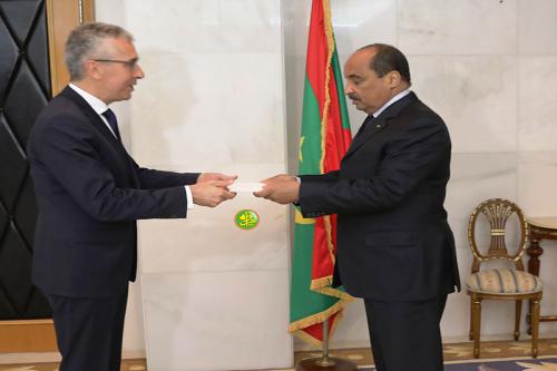 Le Président de la République, Monsieur Mohamed Ould Abdel Aziz, a reçu, mardi 23 octobre courant,  au palais présidentiel à Nouakchott, les lettres de créance des nouveaux ambassadeurs extraordinaires et plénipotentiaires accrédités auprès de la République Islamique de Mauritanie.