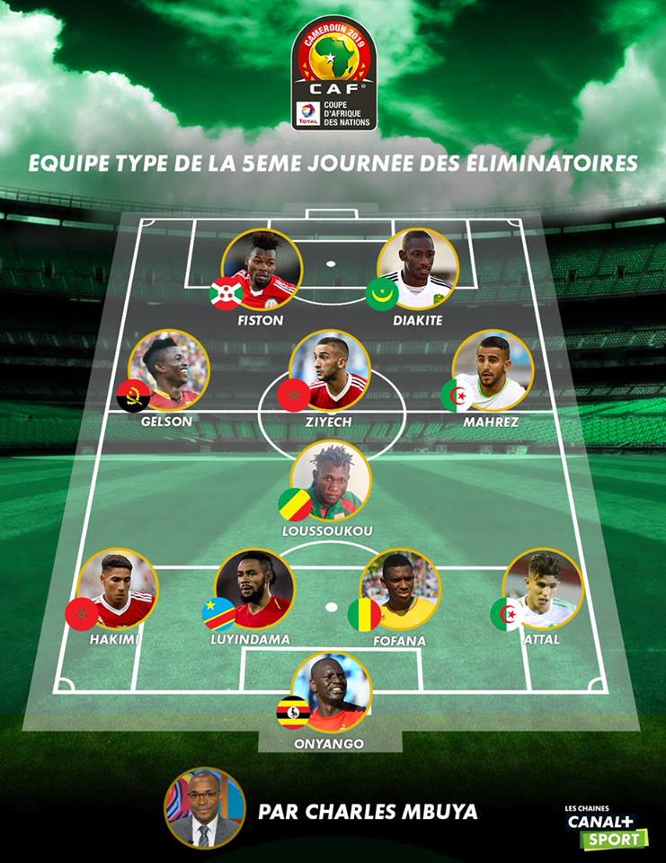 La chaine française, Canal+ Sport a établi son onze type de la 5ème journée des éliminatoires de la CAN 2019. Dans cette équipe figure la star mauritanienne du match Mauritanie-Botswana, qui a marqué les 2 buts, lors de la qualification du pays, Ismail Diakité.
