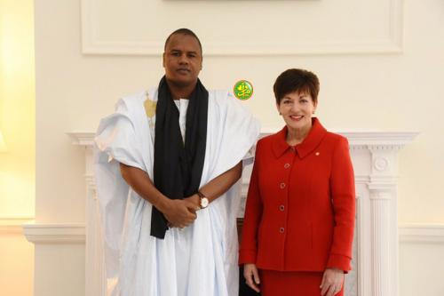 Le diplomate mauritanien a transmis au cours de la cérémonie de présentation des lettres de créances les salutations du Président de la République Monsieur Mohamed Ould Abdel Aziz à son ami la Gouverneur générale de Nouvelle Zélande. .