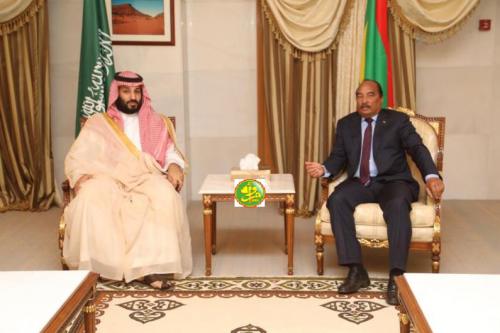 Le Président de la République Monsieur Mohamed Ould Abdel Aziz a eu des entretiens dimanche matin au Palais présidentiel à Nouakchott avec Son Altesse Royale, l’Emir Mohamed Ben Selmane Ibn Abdel Aziz, Prince héritier d’Arabie Saoudite sœur, vice- président du conseil des ministres et ministre de la défense nationale qui effectue actuellement une visite de travail et d’amitié en Mauritanie.