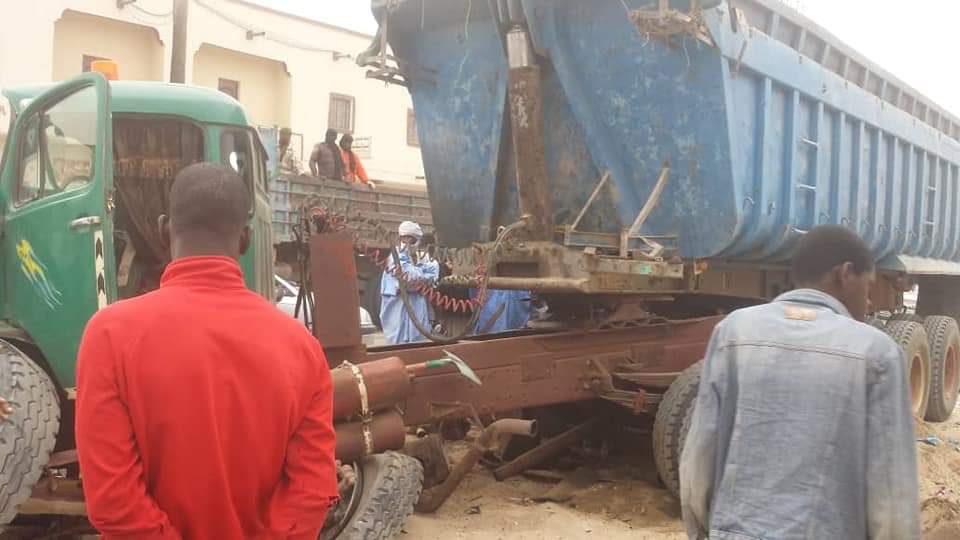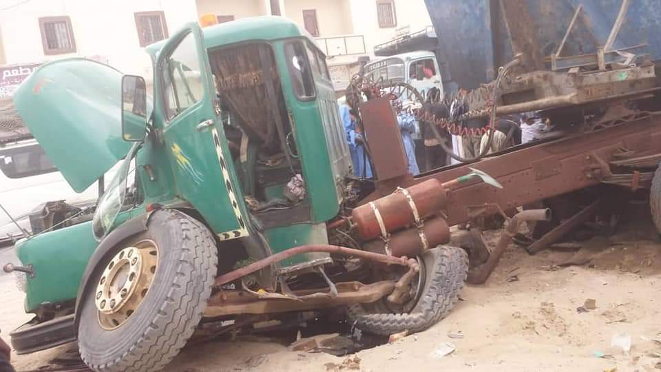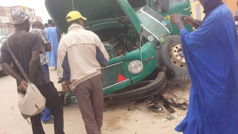 Des témoins oculaires ont diffusé sur les réseaux sociaux les images d'un véhicule fortement endommagé, à la suite d’une collision avec un poids lourd en stationnement sur la route d’Akjoujt.