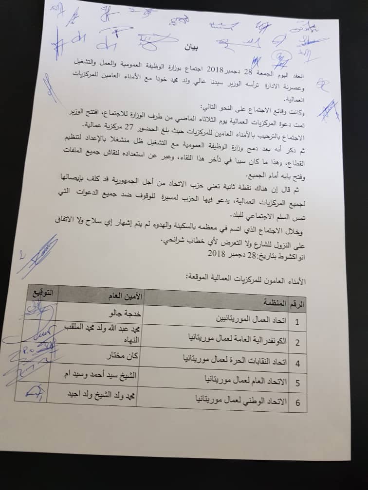 Des sources auprès du ministère de tutelle ont confirmé la participation de tous les syndicalistes, à l’exception de Ould Beye, à une réunion de contact avec le ministre.