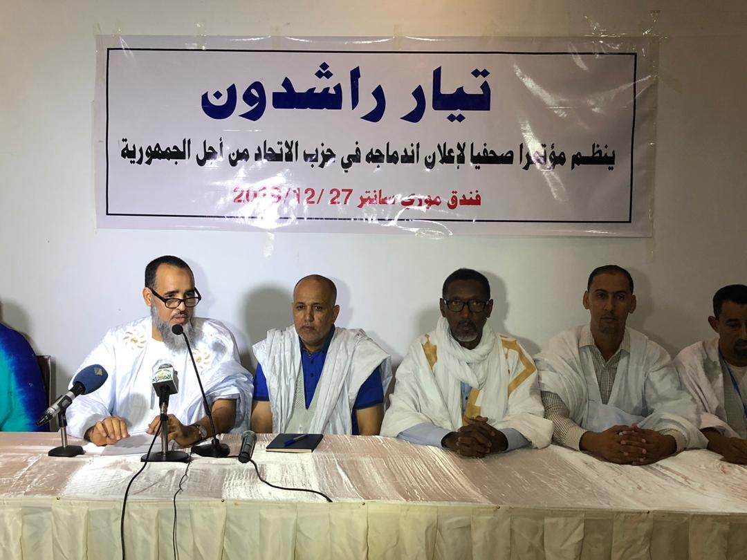 - نعلن على بركة الله، وبعونه، اندماج تيار راشدون في حزب الاتحاد من أجل الجمهورية في شكله الجديد، سعيا إلى توطيد وحدة القوى السياسية الداعمة لرئيس الجمهورية ودعما لمسيرة الإنجاز والبناء التنموي .
