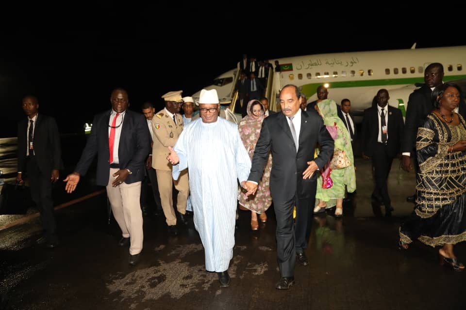 أظهرت صور وصول الرئيس محمد ولد عبد العزيز و السيدة حرمه مريم بنت أحمد الملقبة تكبر مساء اليوم الجمعة إلى باماكو عناقا حارا من طرف الرئيس المالي بابكر كيتا .