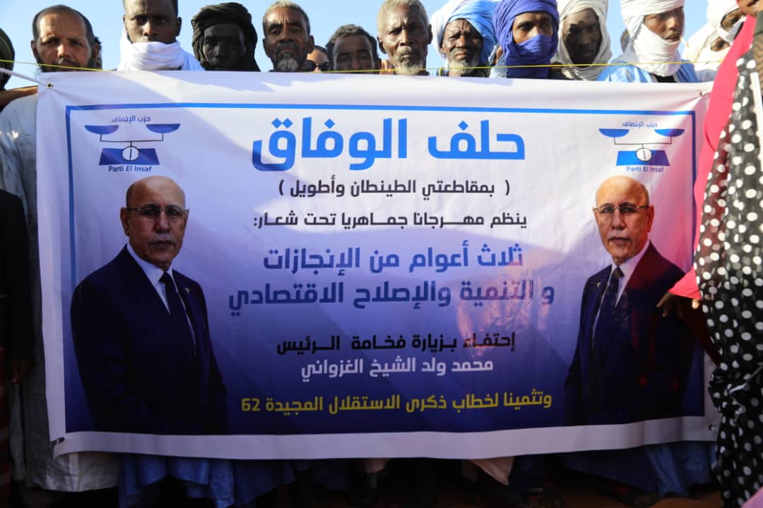 نظم حلف الوفاق بمقاطعة الطينطان، مساء الأربعاء، مهرجانا جماهيريا، تحت شعار "ثلاث سنين من الإنجازات الاقتصادية والاجتماعية"، خصص ل"تثمين" خطاب الرئيس محمد ولد الشيخ الغزواني في ذكرى عيد الاستقلال والاحتفاء بزيارته المرتقبة لولاية الحوض الغربي.