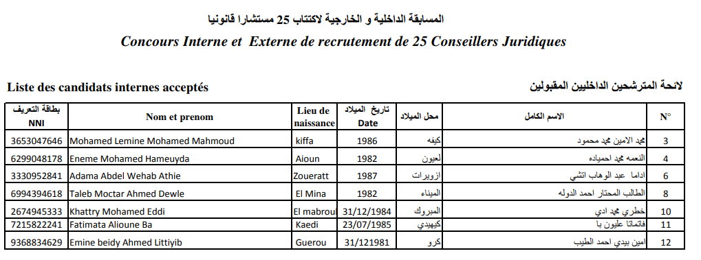 وكانت لجنة المسابقات أعلنت قبول ملفات 7 متسابقين لخوض مسابقة الاكتتاب الداخلي بعد أن رفضت ملفات 5 متسابقين آخرين بحجة أنهم من سلك غير معني كما توثقه الصور أدناه.