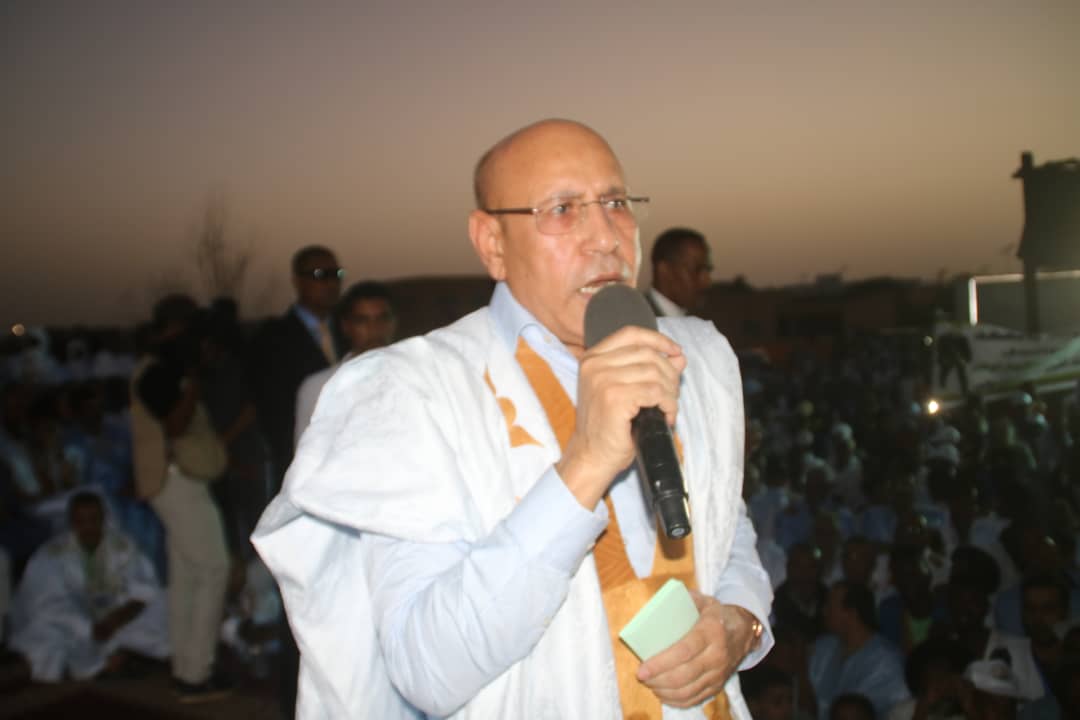 وحيا غزواني في مستهل خطابه ساكنة أطار ومن خلالهم ولاية آدرار؛ شاكرا لهم على الحشد الكبير.